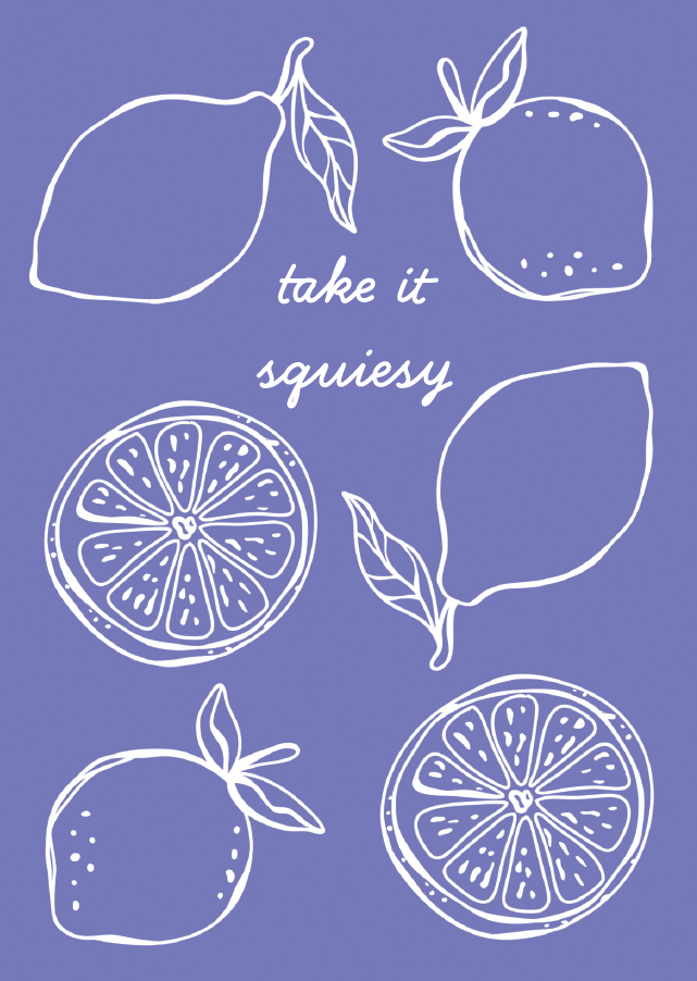 Im Rahmen eines dreimonatigen Projekts durfte ich wertvolle Erfahrungen mit meinem ersten richtigen Kunden „squies“ sammeln. Dabei habe ich Postkarten sowie T-Shirts und Pullover gestaltet. Sämtliche Designs orientierten sich am zentralen Markenelement – der Zitrone, die auch als Logo des Unternehmens fungiert.